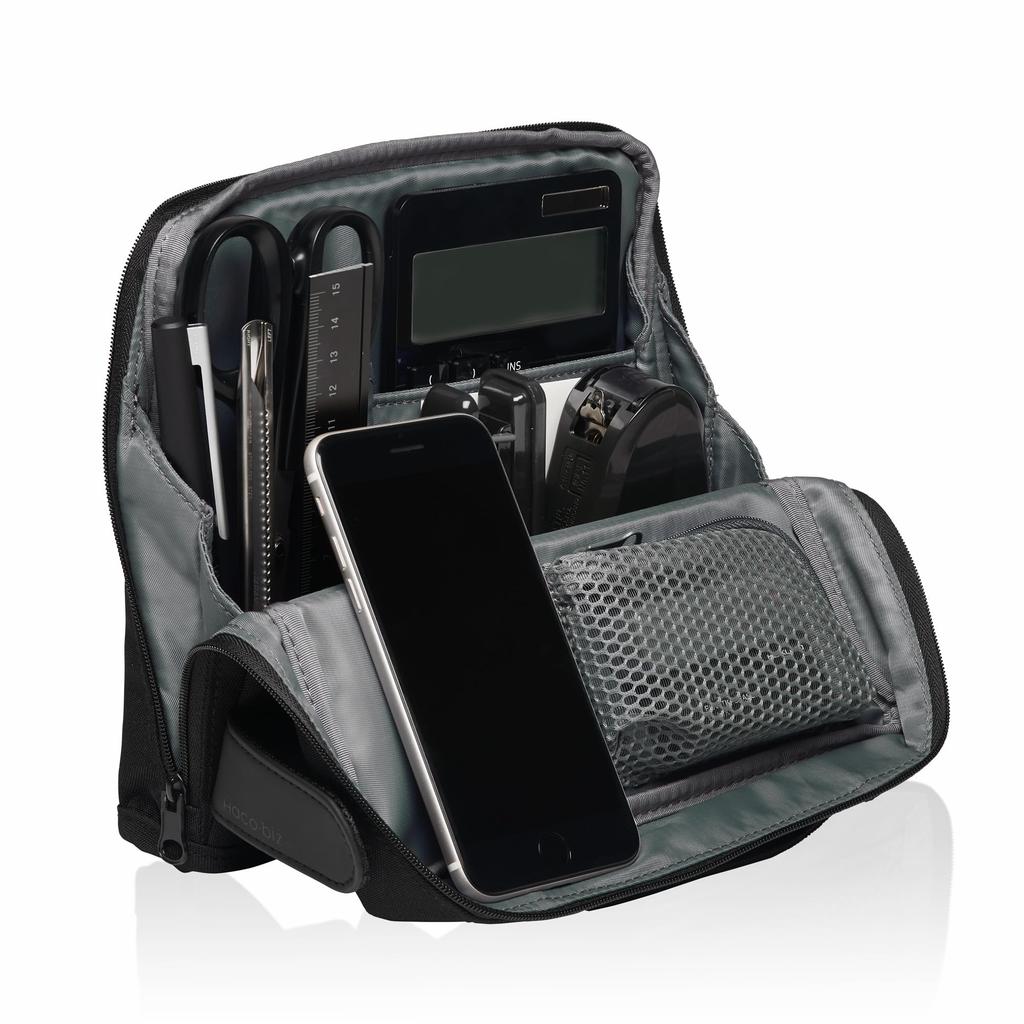 It allows workers at free-address offices or cafes to neatly store all the items they need. From stationery such as scissors and pens to gadgets like a mouse and AC adapter, you can store the items that suit your working style.