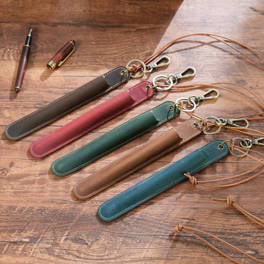 2026 Neck Pen Cover Cowhide Pen Protective Cover Single Pen Storage Pencil Case Retro Leather Cover