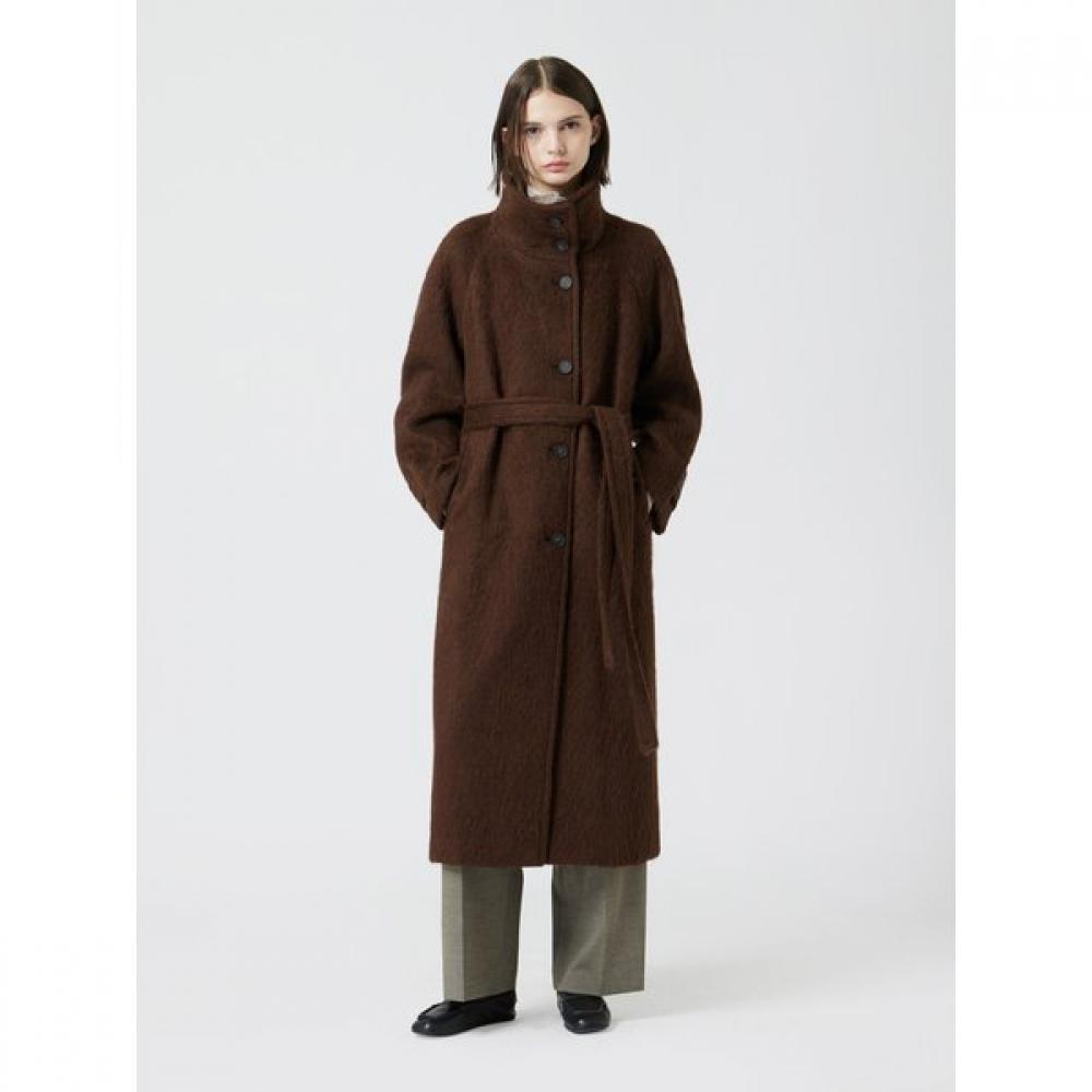Il cappotto lungo ad alto collo in misto alpaca C254MSG031 presenta la texture del materiale bouclé che risalta. Sfoggia un look sofisticato con il suo design a collo alto e la chiusura a un bottone, offrendo al contempo comfort grazie al materiale leggero e alla silhouette rilassata.. La cintura può essere utilizzata per creare vari look e stili.
