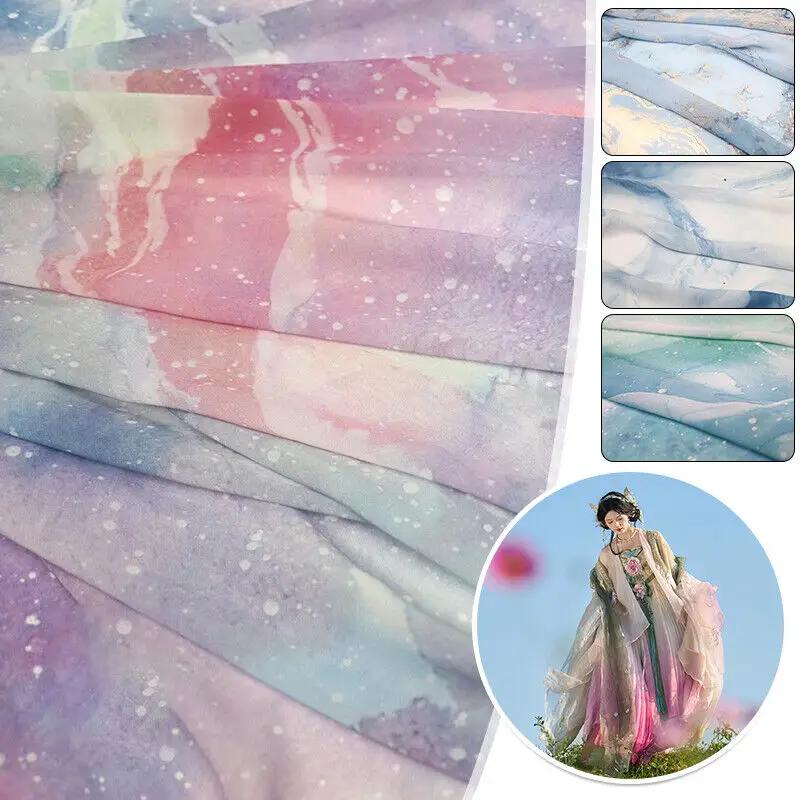 100x150cm Gradient Chiffon Fabric Retro Hanfu Jade Patterned Fabric Multicolor Printed Fabric Doll Cloth Craft Dress Supplies