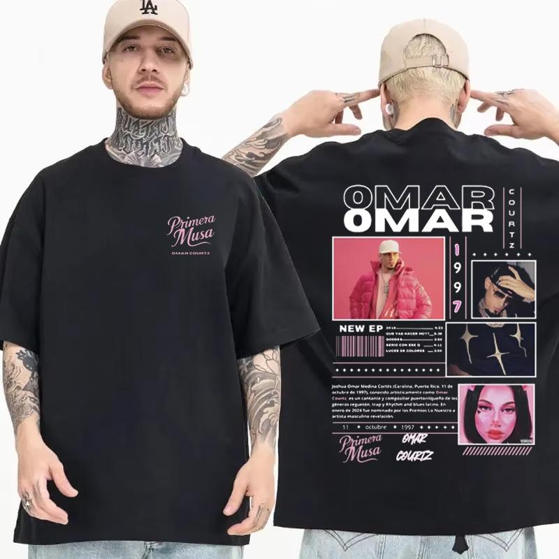 2025 Estate Omar Courtz Primera Musa Album Tour Merch T-shirt Stampata 100% Cotone Uomo Hip Hop Moda Casual Manica Corta