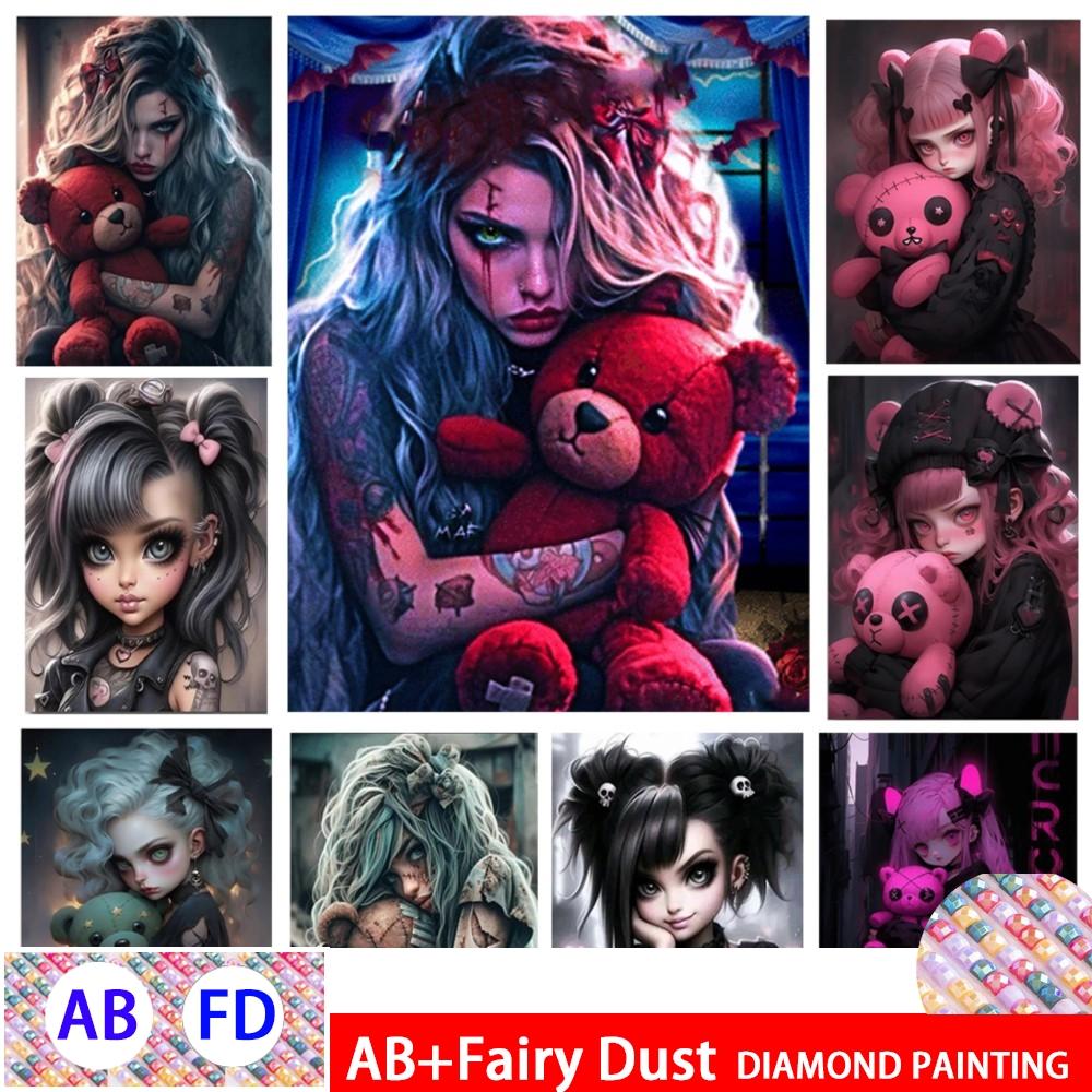 AB Polvere di Fata Ragazza Orso Pittura Diamante Nuovo 2024 Fai da Te Quadrato Completo Rotondo Mosaico Diamante Cartone Animato Gotico Fantasy Arte Decorazione