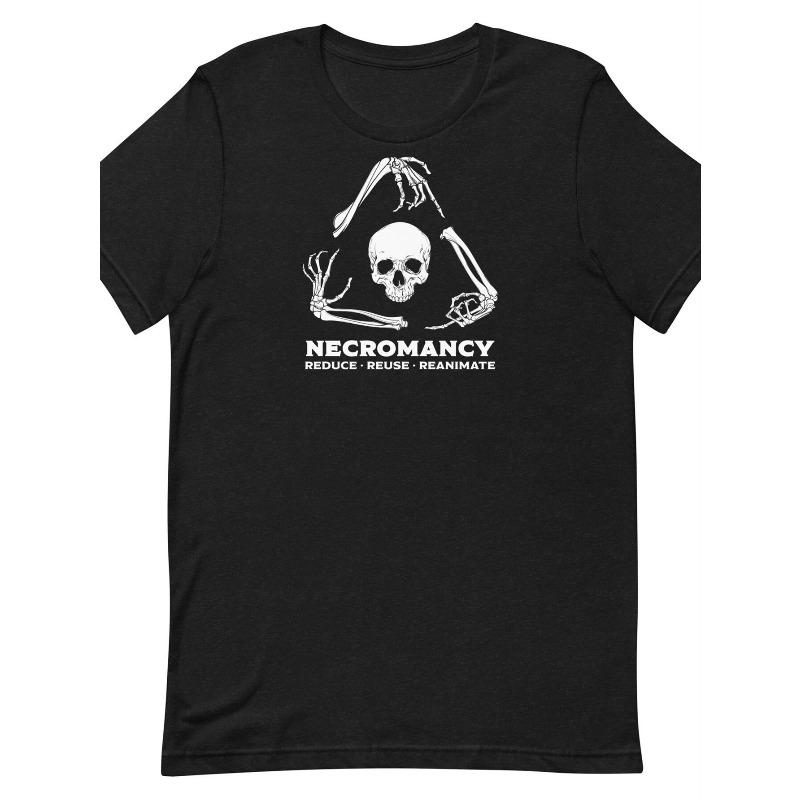 European Size 's Officially Inspired D&D Necromancy Spellcasting T-Shirt - Black & White Wizard Skeleton & Necromancy Spell Cards