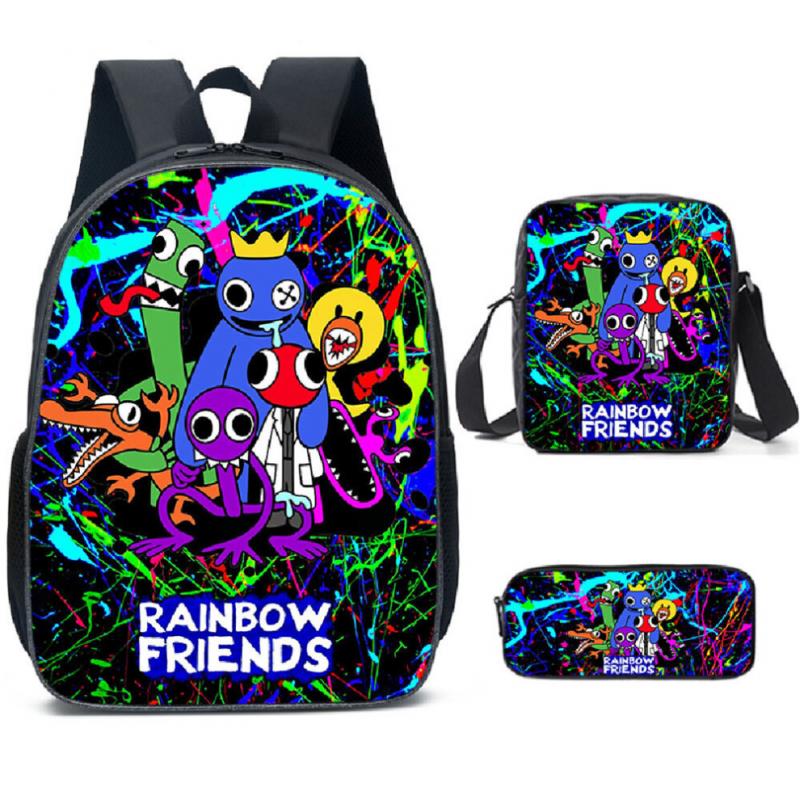 Set da 3 Pezzi Amici Arcobaleno Bambini Zaino Scolastico Zaino Borsa a Spalla Crossbody Astuccio