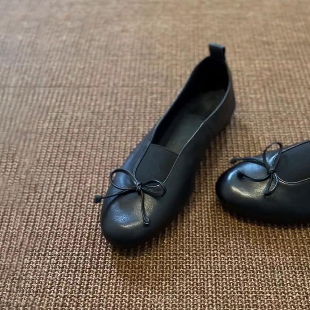 Round head bow ballet single shoes shallow mouth one pedal grandma shoes flat Mary Jane shoes