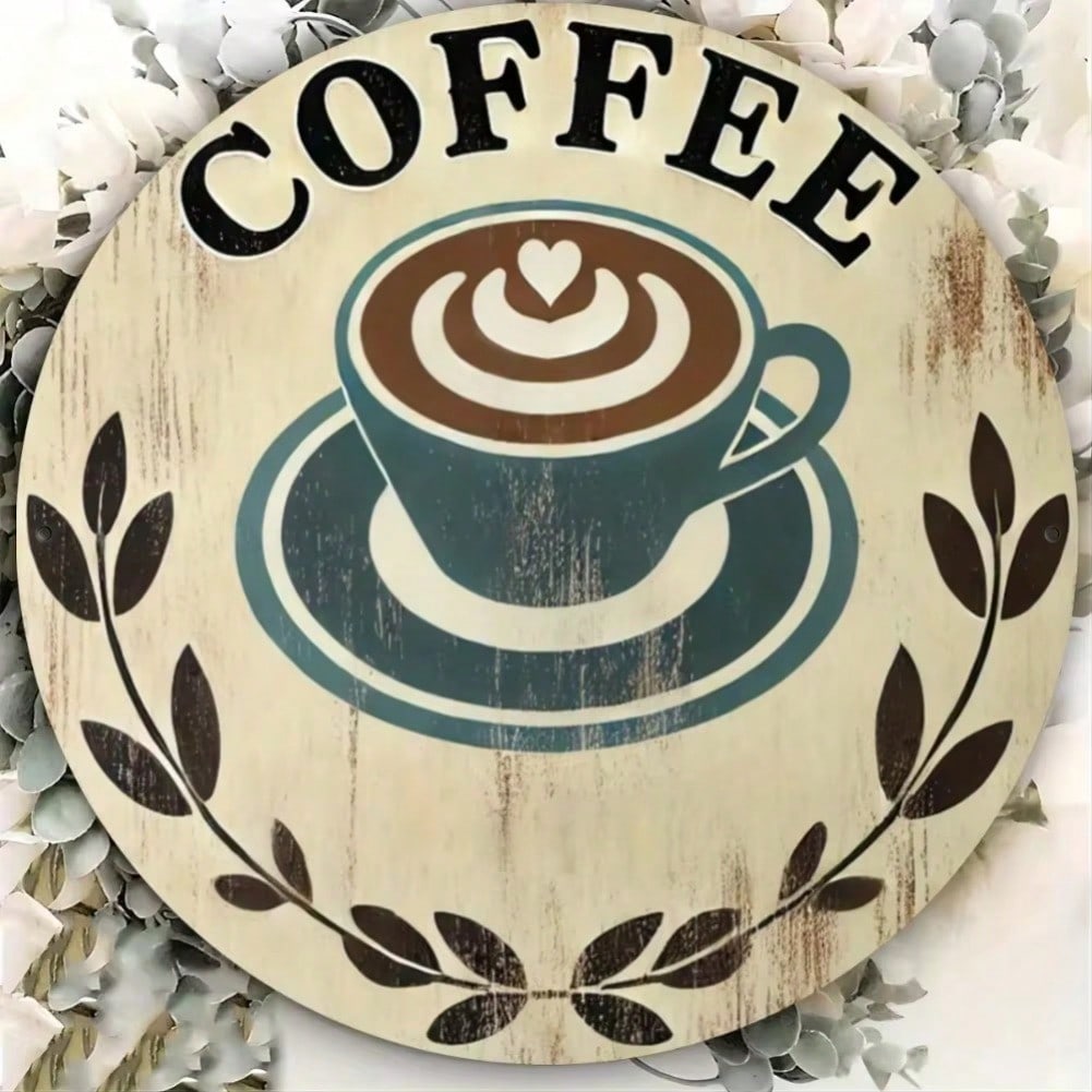Vintage Coffee Metal Wall Art 8 Inch Round Iron Sign Cafe Bar Home Decor