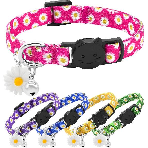 Floral Cat Collar Breakaway with Daisy Pendant, Cute Flowers Daisy Cat Collars for Girl Cats, Safety Removable Cat Collars for Kittens Soft Kitty
