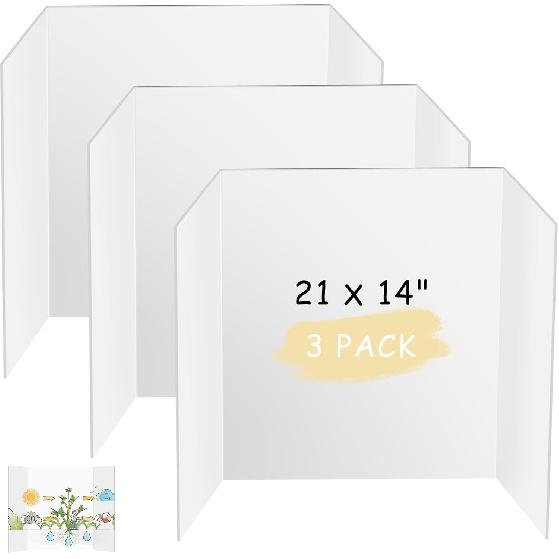 HAUTOCO 3 Pcs Small Trifold Poster Board 21 x 14 inches Tri Fold Presentation Boards White Corrugated Project Boards for Science Fair, School