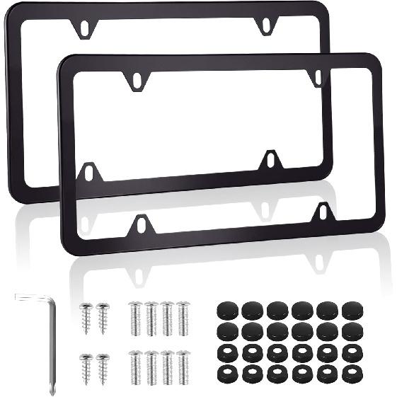 Alpmosn 2PCS Stainless Steel License Plate Frames, 4 Holes Car Licence Plate Covers with Screws Washers and Caps, Car Exterior Accessories, License