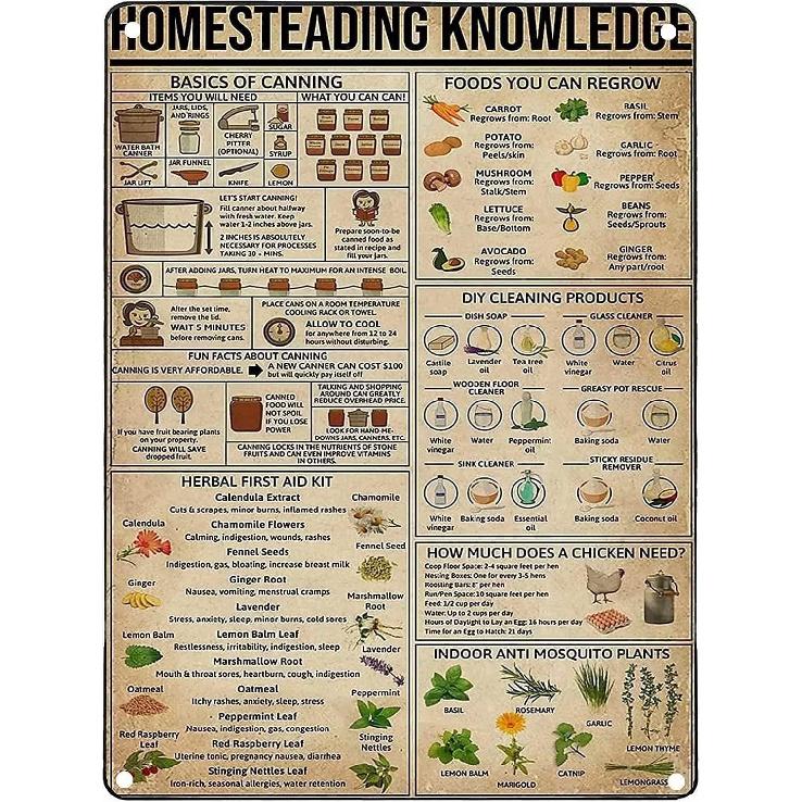 Homesteading Knowledge Metal Tin Sign Diy Cleaning Products Farm House Living Room Kitchen Bathroom Home Art Wall Decoration Plaque Gift