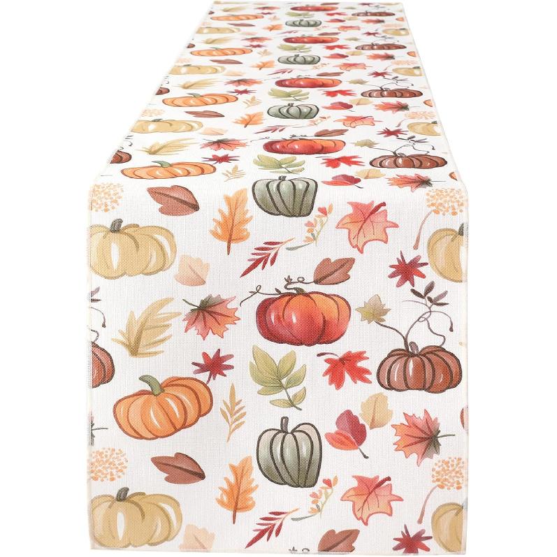 OWENIE Fall Table Runner for Kitchen Dining Table, Thanksgiving Autumn Printed Harvest Pumpk Maple Leaves Textured Fabric Halloween Holiday Home