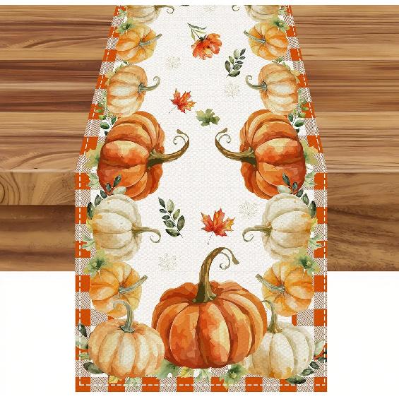 Pumpkin Fall Table Runner, Autumn Thanksgiving Pumpkin Kitchen Dining Table Decoration, Holiday Party Decor, 13x72 Inch