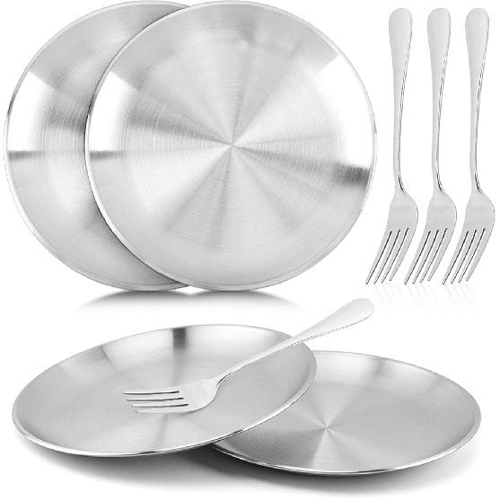 【Quality Material】The metal dinner plates are crafted from 304(18/8) stainless steel, with excellent rust and corrosion resistance, will not releasing harmful substances to ensure your health and safety, perfect for everyday use
