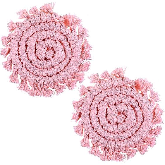 2 Pack Handmade Boho Drink Coaster Holder Cotton Knitted Car Coasters for Cup Holders Universal Auto Macrame Non-Slip Cup Holder Removable Car