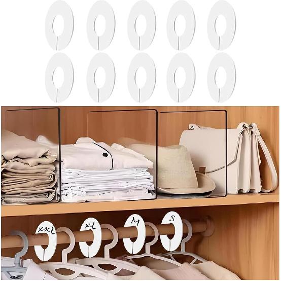 10-Pack Closet Dividers for Hanging Clothes, Durable Plastic Wardrobe Organizers - Perfect for Closet Rods, Clothing Racks & Retail Display