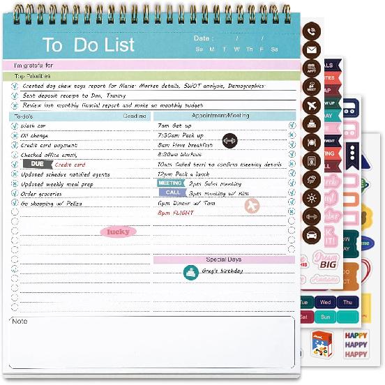 To Do List Notepad, Spiral Bound Undated Daily Planner, 52 Sheets 8.5" X 10.5" Tear Off Task Planning Pad with Checklist, For Work Office Home