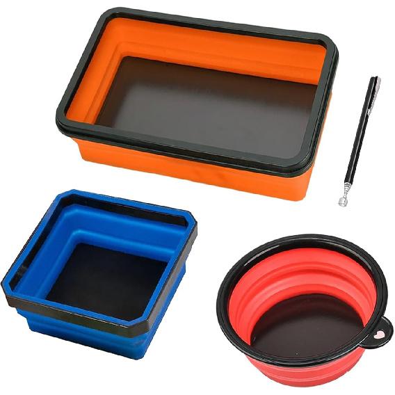 Collapsible Magnetic Parts Tray Set & Flexible Magnetic Pickup Tool, 3 Different Size Magnetic Screw Holder & Pick-Up Sweeper for Screw, Bolts, Nuts,