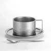Retro Series Coffee Cup Set Double Wall 304 Stainless Steel with Coffee Spoon Coffee Disc Frosted Industrial Style Tea Cup Set