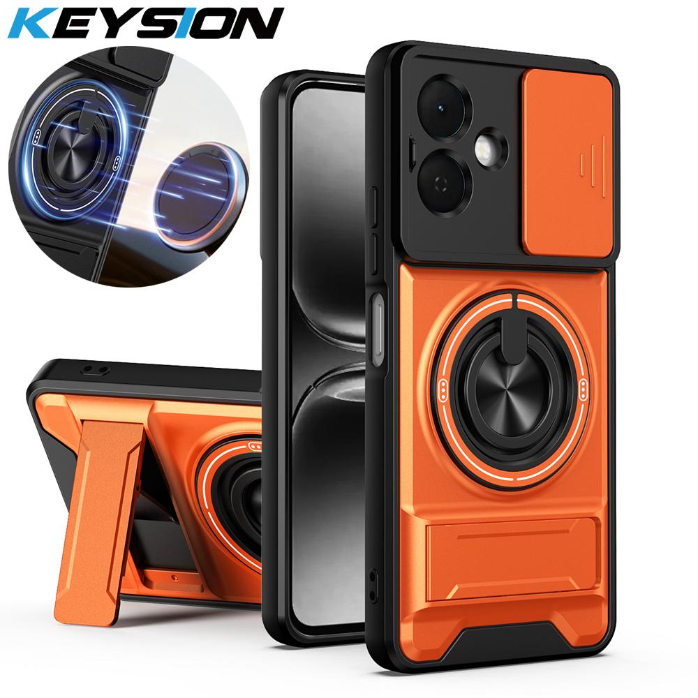 KEYSION Magnetic Phone Case for TECNO Spark Go 2 Slide Camera Protection Upright Kickstand Shockproof Cover for Infinix Smart 10