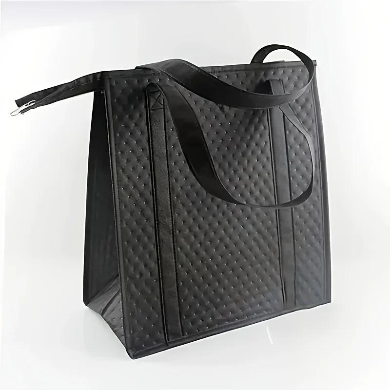 1pc Insulated Grocery Bags, Handheld Thermal Storage Bags, Black Cooler Tote Bags