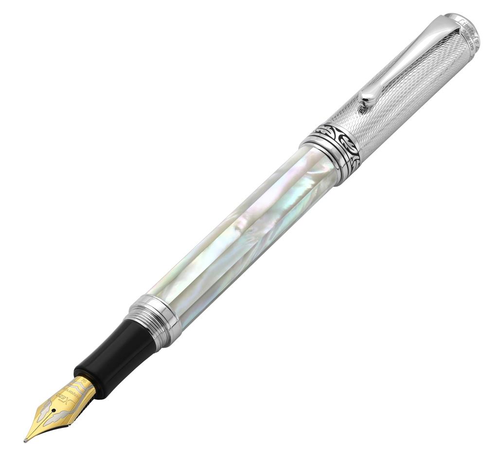 Xezo Maestro Fountain Nib Gift of Writing White Unique Pen, Medium-Fine (0.45mm), Series, Mother-of-Pearl, Guilloched, Handmade, Serialized,