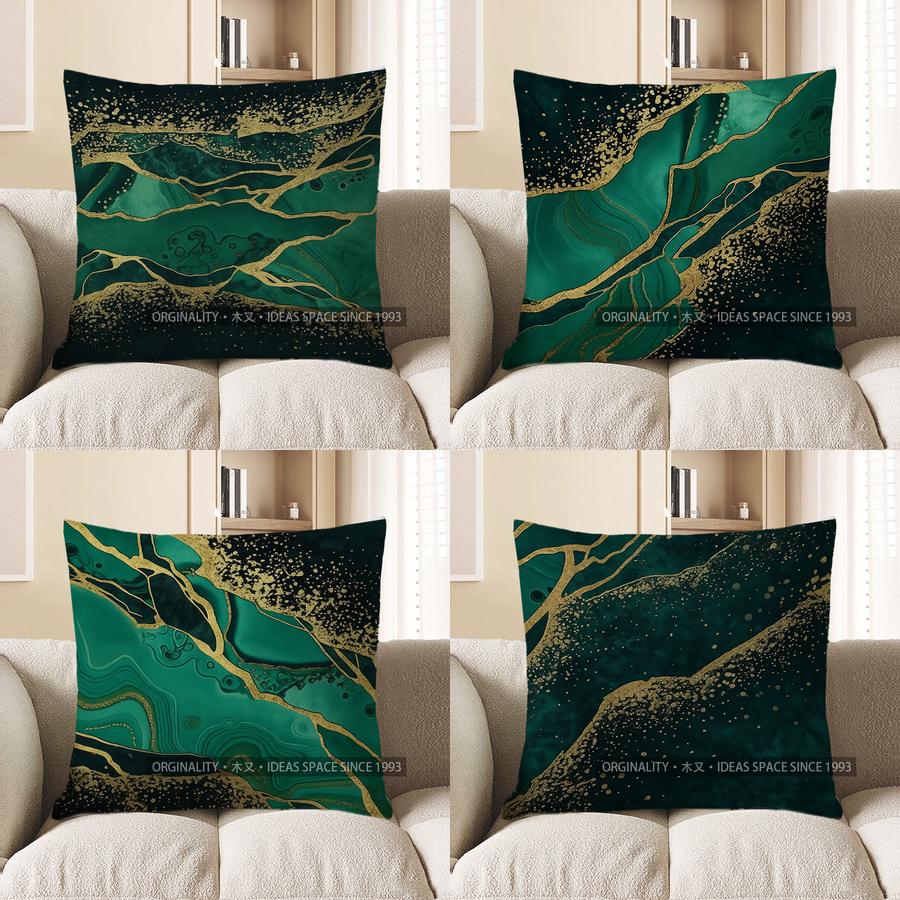 Home Decor Green & Gold Marbled Pattern Throw Pillow Pattern Cushion Cover Suitable For Sofa Bedroom Car Pillow Cover