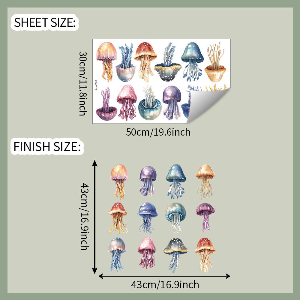 Hand-Painted Vibrant Jellyfish Wall Sticker Sea Life Ocean Theme Self-Adhesive Removable Decor for Bedroom Living Room Wall Art
