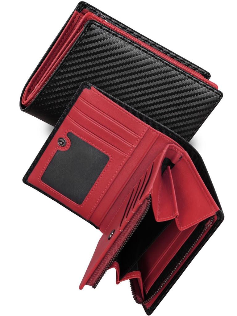 GSG Carbon Leather Bifold Popular Brand Large 19 Card Zippered Coin Foldable Perfect Gift for Model 22088 Men's Wallet, Leather, Capacity, Slots,