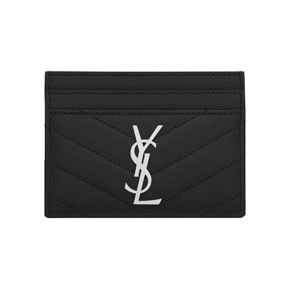 Saint Laurent Ysl Monogram Silver Logo Grainy Embossed Quilted Leather Card Holder Women Card Holder Black 423291-BOW02-1000