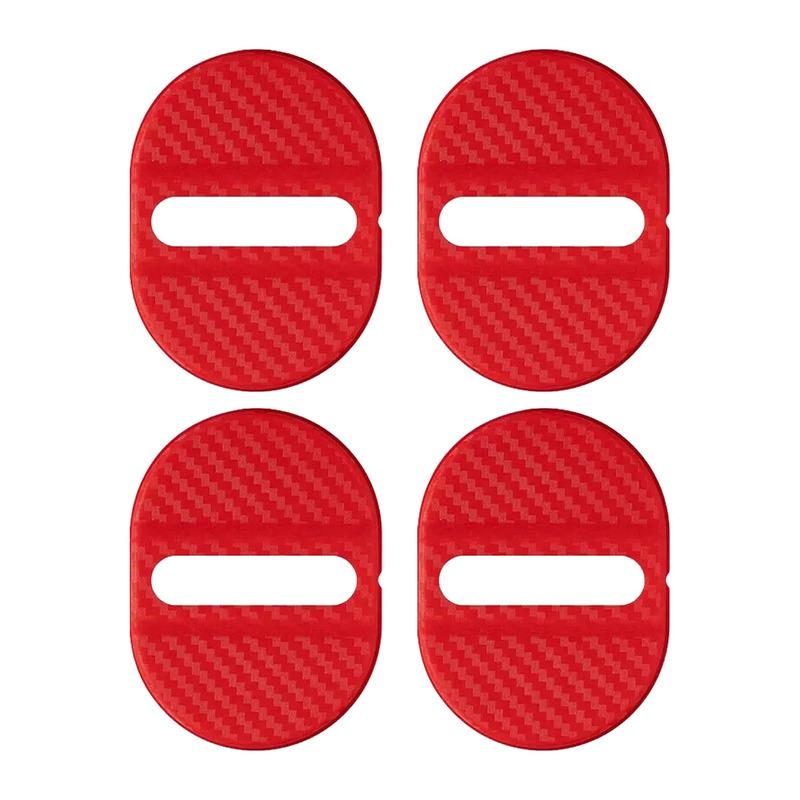 Universal 4pcs Red Carbon Fiber Style Car Door Lock Latch Protective Cover Trim Anti Rust Sticker Decor