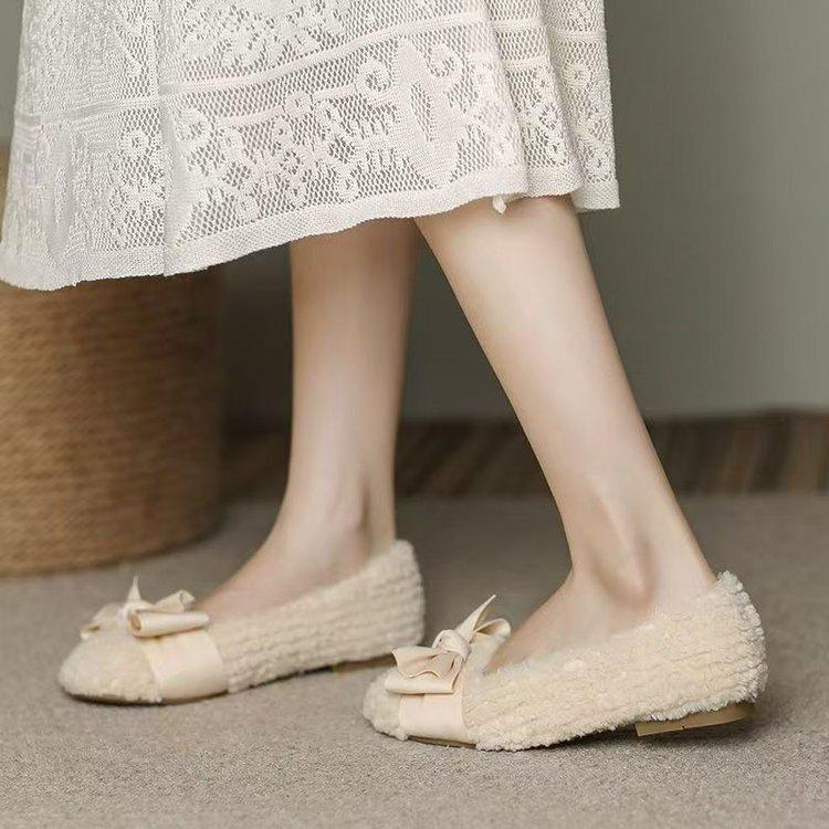 Mao Mao shoes outer wear single shoes autumn and winter new plush comfortable casual bow Doudou cotton shoes