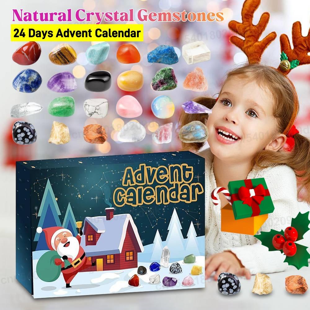 Christmas Advent Calendar 24 Days Natural Crystal Gemstones Collection Box Countdown Calendar Crystal Stone Gift Box for Kids