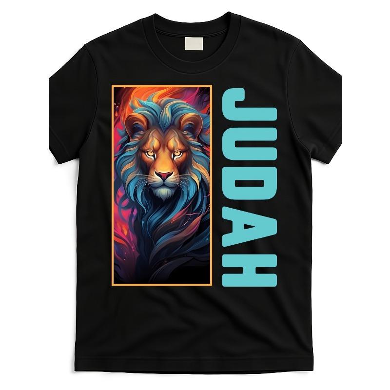 European sizes Mens T-Shirt - Graphic Print with Lion Face & Hebrew Lettering, Soft Breathable Crew Neck Short Sleeve