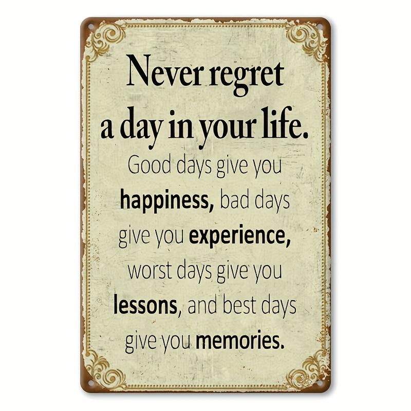 Humorous Retro Metal Sign Dont Regret Every Day of Life Outdoor Home Cafe and Bar Decoration Fun Poster Perfect Holiday