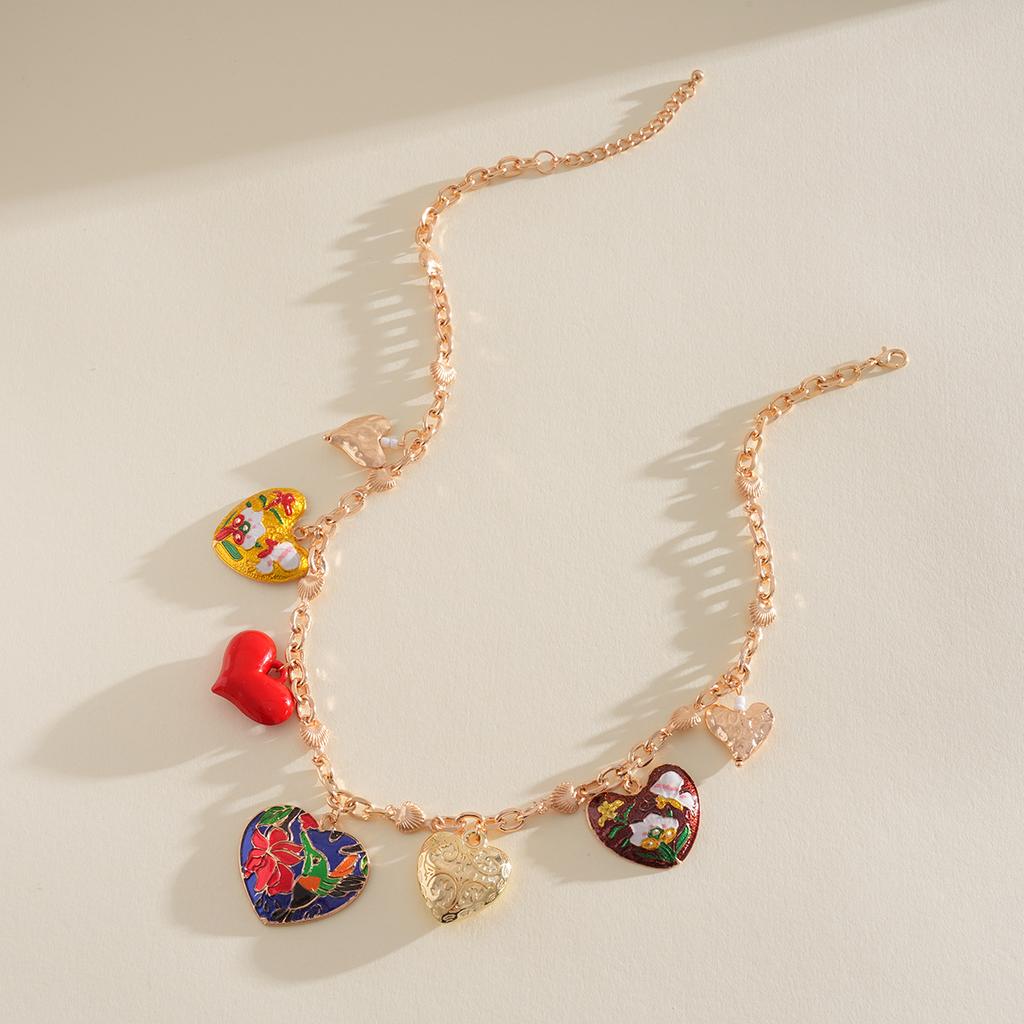 Two-piece set of metal spray paint love pleated pattern necklace medieval collarbone chain personalized item decoration
