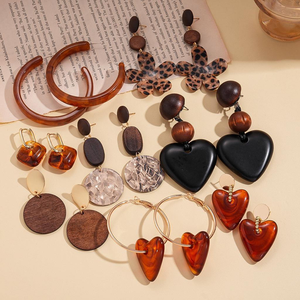 Acrylic smudge round love flower silver needle earrings melad feeling earrings