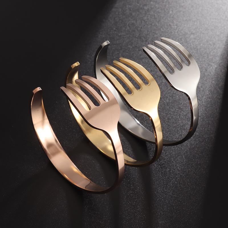 Creative Design Fork Cuff Bracelet Stainless Steel for Women Personality Trend Party Jewelry Three Colors Optional