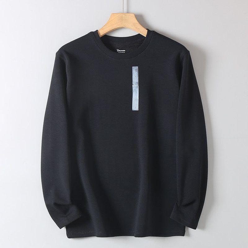 Trade Original Order Tail Goods Composite Long sleeve Pullover Fleece-lined Autumn and Winter Men's Solid Warm Loose round Neck T-shirt Fashion