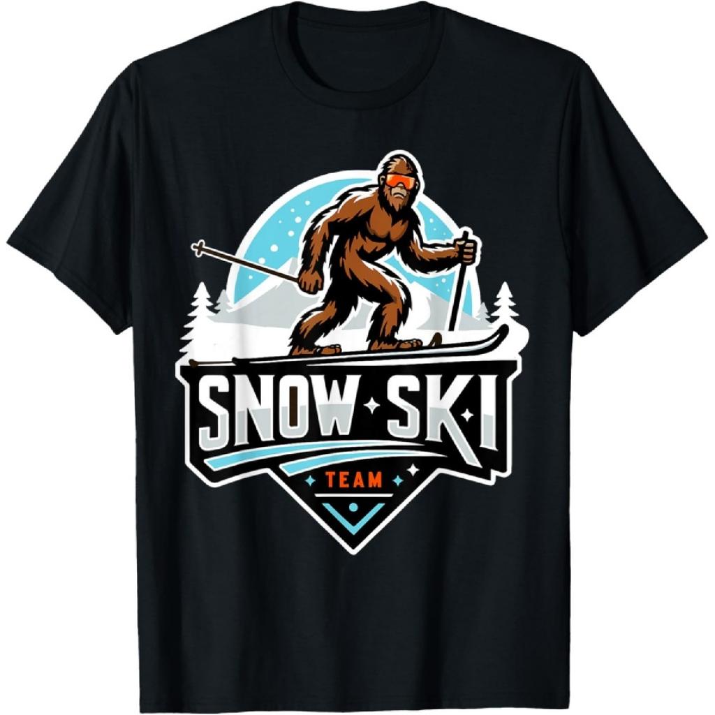 Sasquatch Snow Ski Team Snow Skiing Bigfoot Cartoon Graphic T-Shirt