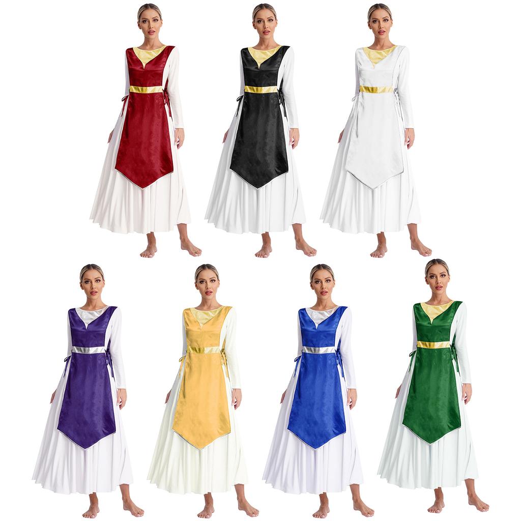 Tunica da ballo di lode per donna, abbigliamento liturgico metallizzato lucido, sovrapposizioni per danza di adorazione in chiesa