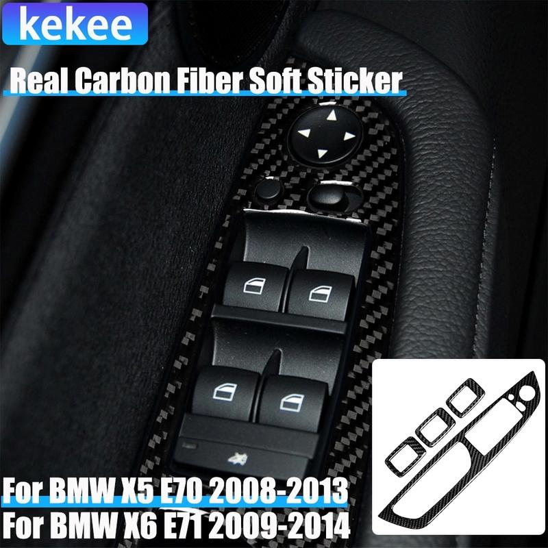 Real Carbon Fiber Car Accessories Window Lift Decorative Panel Trim Cover Soft Sticker For BMW X5 E70 2008-2013 X6 E71 2009-2014