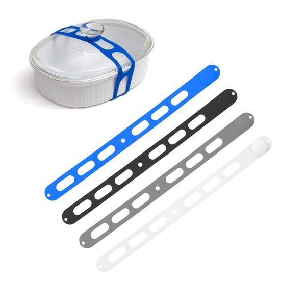 3/4Pcs Pot Lid Strap Adjustable Silicone Bands Stretchable Self-Locking Dishwasher Safe BPA-Free Lid Securing