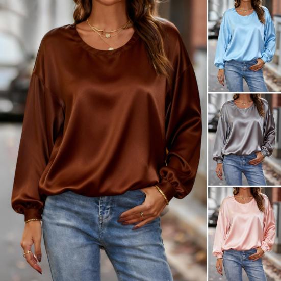 Top da Donna Tinta Unita Girocollo Manica Lunga Camicetta Tinta Unita Vestibilità Larga Casual Camicetta da Lavoro Festa Appuntamento