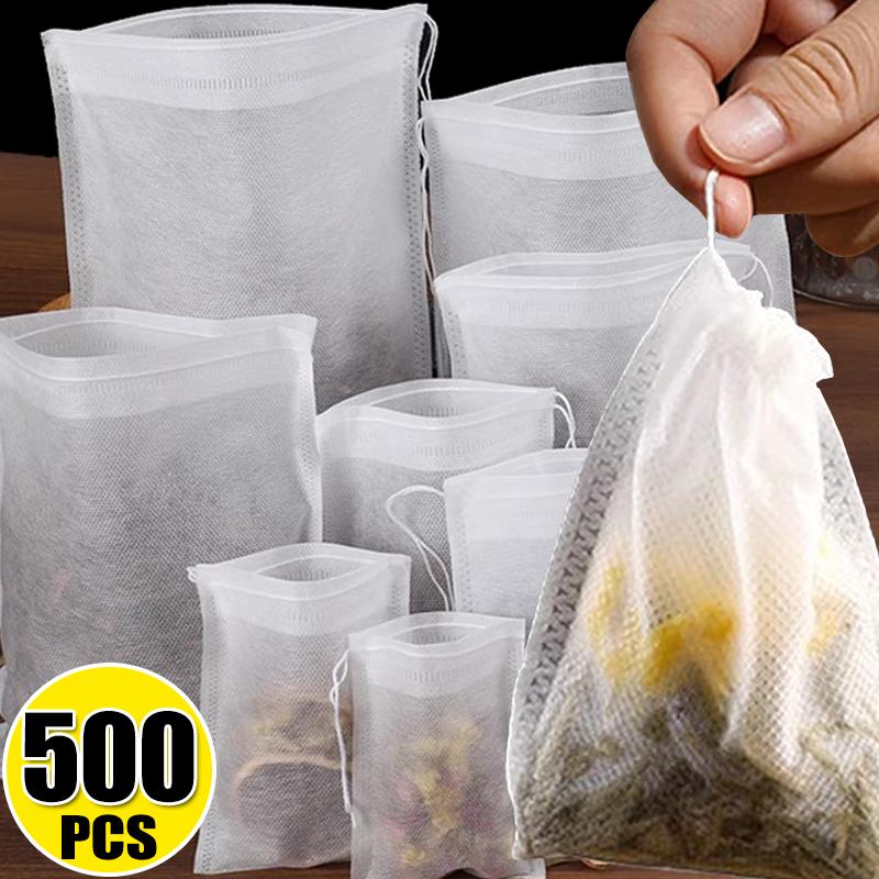 100-500PCS Disposable Tea Bags Filter Paper Non-woven Sealing Teabags with Drawstring Kitchen Teaware Coffee Loose Tea Spice Bag