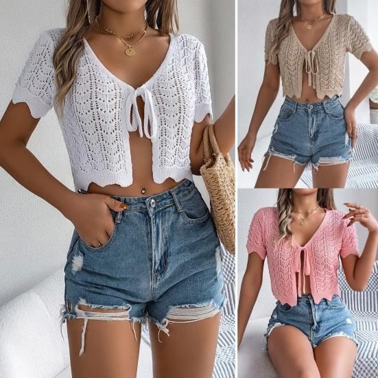 Questo top da donna all'uncinetto in fibra di poliestere di alta qualità è la scelta perfetta per mettere in risalto le tue curve con un tocco di femminilità. Versatile e facile da abbinare, si abbina bene a jeans, leggings, gonne o pantaloncini.