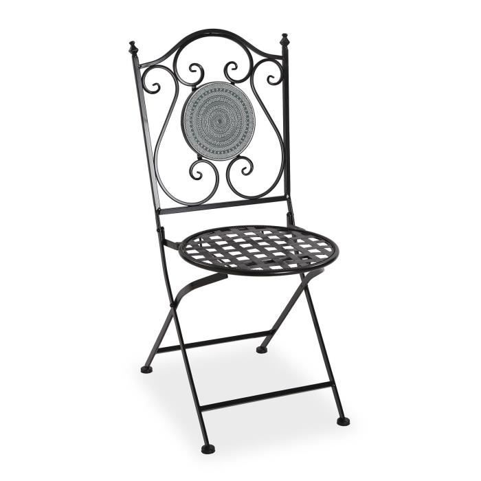 Chaise de jardin Trumpington - 92 x 50 x 39 cm - Motif mosaïque en Métal - Noir et gris - Versa