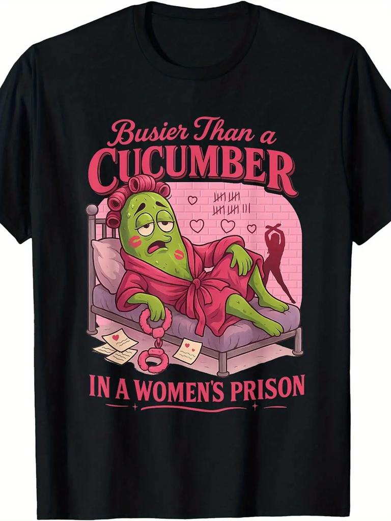 Womens Unisex Funny Dirty Prison TShirt Busier Than A Cucumber in Womens Prison Slogan Pink Cucumber Female Inmates Design