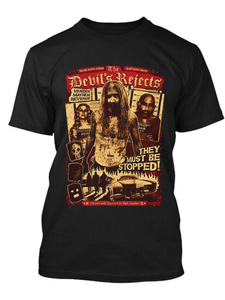 Mens Womens Horror Movie TShirt The Devils Rejection with They Can Never Be Stopped Print Black Retro Round Neck Tee