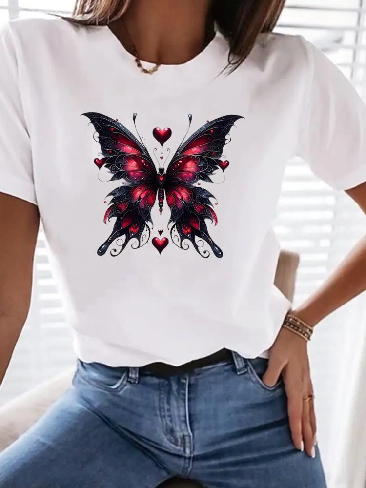 (Asian Size) trend butterfly Clothing T Shirt Woman Women Fashion Tee Top Print Female Short Sleeve Graphic T-shirts