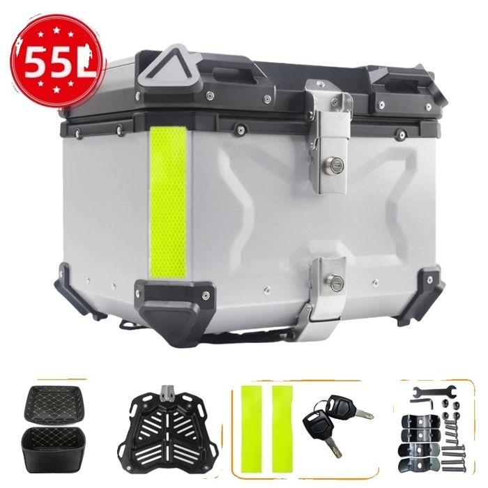 Boîte de Casque de Moto, Alliage d'Aluminium, Design Étanche, 55L Argent